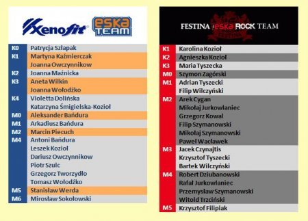 W tym sezonie drużyny Xenofit ESKA Team oraz Festina ESKA Rock Team będą reprezentowane przez: