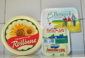 Light, low, free czyli zielone światło Obniżenie wartości energetycznej produktów spożywczych jest ściśle związane z obniżeniem zawartości tłuszczu i/lub cukru w jego składzie. Dlatego też warto nauczyć się poprawnie odczytywać informacje zawarte na opakowaniu. Produkt niskotłuszczowy to taki, w którym zawartość tłuszczu w 100g wynosi nie więcej niż 3g, a w przypadku produktów płynnych 1,5g. Określenie produkt niedostarczający tłuszczu stosowane jest jedynie w stosunku do produktów płynnych, w których zawartość tłuszczu w 100ml nie przekracza 0,5g. Niestety regulacje prawne w wielu państwach są różne, jednak można przyjąć, że następujące oznaczenia: -light – kaloryczność produktu została obniżona o 30% lub zawartość tłuszczu zredukowana o 50% -low – 100g produktu dostarcza nie więcej niż 120kcal lub 40kcal na porcję -reduce - kaloryczność produktu została obniżona o 25% lub zawartość tłuszczu zredukowana o 25% -free – produkt w porcji zawiera nie więcej niż 0,5g tłuszczu lub cukru lub jego wartość energetyczna wynosi nie więcej niż 5kcal w porcji Rola tłuszczu w organizmie Tłuszcze spełniają wiele różnorodnych funkcji: -są skoncentrowanym źródłem energii dla tkanek i narządów -umożliwiają gromadzenie energii będąc główną formą jej zapasu -ułatwiają odczuwanie smaku i przełykanie pokarmu -hamują skurcze żołądka i wydzielanie kwaśnego soku żołądkowego -stanowią budulec błon komórkowych -stabilizują nerki i inne narządy wewnętrzne -dostarczają NNKT -decydują o sprawności układu krążenia -wpływają na stan skóry i włosów -są nośnikami witamin A, D, E i K (rozpuszczalne w tłuszczach) oraz ułatwiają ich przyswajanie z innych produktów. Pokarmy tłuste spowalniają czynność motoryczną przewodu pokarmowego, co przy treningu może sprzyjać zaleganiu pokarmu w żołądku. Ponadto energia z tłuszczów nie jest dostępna tak szybko, jak z węglowodanów. Dieta bogatotłuszczowa/ubogowęglowodanowa doprowadza też do zmniejszenia mięśniowej puli glikogenu, powodując mniejszą sprawność mięśni.