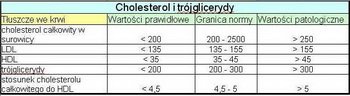 Cholesterol dobry czy zły? Cholesterol jest wytwarzany w organizmie w sposób ciągły ale od 20 – 40% tego składnika pochodzi z pożywienia. Wytwarzany w organizmie, głównie w wątrobie, określany jest jako cholesterol endogenny. W osoczu krwi lub surowicy występuje w powiązaniu z białkami w postaci lipoprotein. Najważniejsze z punktu widzenia transportu cholesterolu są lipoproteiny o małej gęstości LDL i dużej HDL. LDL mają za zadanie transportować cholesterol do komórek ustrojowych m.in. do komórek naczyń tętniczych, gdzie w sprzyjających warunkach może się on odkładać. W ten sposób stężenie LDL jest powiązane z ryzykiem wystąpienia choroby wieńcowej. Natomiast HDL ma działanie ochronne i przeciwmiażdżycowe. Zadaniem tej frakcji lipoprotein jest transport cholestserolu z naczyń tętniczych do wątroby. Dlatego tak ważny jest nie tylko ogólny poziom cholesterolu we krwi ale też frakcji HDL. W tabeli 4 przedstawiłam wartości składników tłuszczowych we krwi.