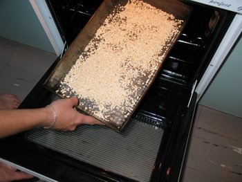 Wykonanie: Płatki owsiane wsypać na blachę do pieczenia i piec w piekarniku przez ok. 25 minut w temperaturze ok. 150 st. Celsjusza, mieszając od czasu do czasu, aby się nie przypaliły.