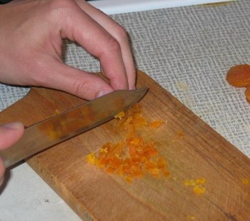 Na patelnię wlać miód i wsypać cukier. Doprowadzić do wrzenia i szybko dodać masło orzechowe oraz skórkę pomarańczową.
