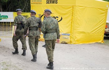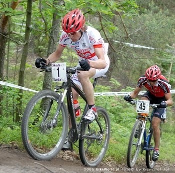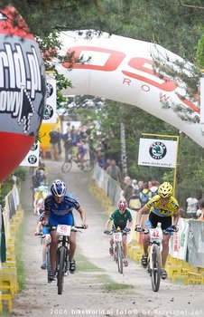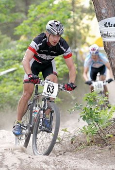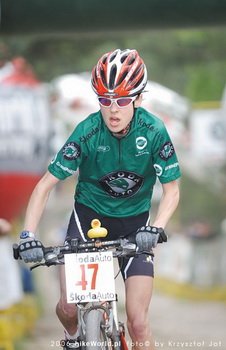 Kiedy jechałem do Sławna na kolejna edycje GP Skoda Auto padał deszcz, było zimno a prezenter w TV oświadczył, że „będzie jeszcze zimniej”. Początek czerwca i 3 stopnie w nocy ?. Zapakowałem więc odpowiednia ilość bluz i polarów, a na mój największy skarb - czyli sprzęt fotograficzny ( bo, żona została w domu :) - zabrałem specjalne „antydeszczowe” ubranko. Sobotnie przedpołudnie zweryfikowało jednak nieco te prognozy. Pogoda była całkiem przyjemna, a nawet pojawiło się słońce, co o tej porze roku powoduje gwałtowny wzrost temperatury. Hm… bieganie w trzech polarach po lesie zaczynało być z lekka męczące, toteż wybrałem się na mały rekonesans do miejscowych sklepów, kupując „coś z krótkim rękawkiem”. Nawet całkiem udane zakupy… No, ale od rana na piaskach opoczyńskich lasów trwają wyścigi najmłodszych kategorii, szybko więc udaje się z powrotem na trasę wyścigu z aparatem w ręce. Stare policyjne powiedzenie mówi, że przestępca zawsze wraca na miejsce zbrodni - to ponoć sprawdzone twierdzenie, potwierdziło swą moc ponownie. Dokładnie w Sławnie w 1999 roku na III Mistrzostwach Polski MTB po raz pierwszy zrobiłem zdjęcie kolorowemu peletonowi kolarzy na starcie. I tak to się zaczęło. Pamiętając tamtą imprezę i to, jak szukając miejsca rozgrywanych zawodów trzykrotnie ugrzęzłem w piachu po osie, a na teren wyścigu - mimo że wyjechałem całkiem wcześnie - dotarłem… na druga rundę elity mężczyzn :) zaopatrzyłem się w dobry GPS, miałem stały kontakt z bazą umiejscowioną w będącym już na terenie wyścigu samochodzie Lotto i - na wszelki wypadek, jakby technologie i elektronika zwiodły - tubylca na tylnym siedzeniu.