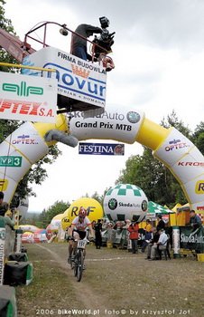 Zapomniałem chyba, że to GP Skoda Auto a nie MP i to siedem lat temu. Różnica była taka - że, MP w tym kraju przydzielane są jakby z łapanki i w drodze „niezbędnej konieczności” co daje takie widowiska, że czasem trudno się zorientować w randze imprezy, ale nie „Lang” Trasa dojazdowa tak perfekcyjnie oznaczona, że nawet taki totalny ignorant nawigacyjny jak ja - znalazł się na parkingu zawodów po kilku minutach. Hm… jakie to proste - kilka żółtych strzałek i parę gwoździ. No dobra - koniec bajek. Co się działo w Sławnie ? Same niespodzianki. Pierwsza, to poranny wyjazd Majki Włoszczowskiej… na dworzec kolejowy. Jak wspomniał trener Andrzej Piątek - wyniki badań jakie dotarły właśnie wieczorem poprzedniego dnia, były podstawą tej decyzji. Starty w Pucharach Świata swoje zrobiły, za tydzień Polanica, potem PŚ w Kanadzie - Majka musi nieco zregenerować organizm. W tej sytuacji na linii startu w zielonej koszulce stanęła Karolina Kozela, a w gronie faworytek do podium zaczęto wymieniać siostry Pyrgies. Ale tu pojawiły się pierwsze niespodzianki - choć nie na samym szczycie podium. Tu, Anna Szafraniec dała do zrozumienia, że tęczowe paski na koszulce to nie przypadek. Może Majka to jeszcze tak, ale nikt inny to jej w kraju na razie nie zagraża. Wygrała pewnie Szafraniec, przed Magdą Sadłecką. Bardzo ciekawie i z niespodziankami w klasyfikacji wyglądała tez rywalizacja w kategorii juniorek.