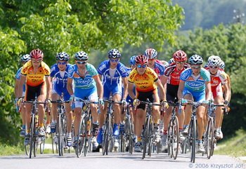 Maja Włoszczowska (Lotto), Mariusz Witecki (Intel – Action) oraz Michał Gołaś (TKK Pacific Atala Norda) triumfowali w wyścigach ze startu wspólnego w zakończonych w niedzielę mistrzostwach Polski w kolarstwie szosowym. Zawody po raz pierwszy od kilku sezonów rozegrano na wymagającej trasie w mocno pofałdowanym terenie, co przełożyło się na charakter rywalizacji. Dla Włoszczowskiej był to już drugi złoty medal, po wywalczeniu tytułu mistrzyni kraju w jeździe indywidualnej na czas. O ile tamten sukces był pewnym zaskoczeniem, o tyle w wyścigu ze startu wspólnego na pagórkowatej trasie można było dawać zawodniczce Lotto większe szanse, choć i tak pokonanie grupy doświadczonych zawodniczek szosowych można uznać za niespodziankę. Zawody rozgrywano w wyjątkowym upale, elita pań miała do pokonania dystans ponad 100km (6 rund po 17km). Po dość spokojnym początku, w drugiej połowie wyścigu ataki rozpoczęły zawodniczki Lotto. Najpierw na największym podjeździe na rundzie atakowała Magda Sadłecka, co wprowadziło mocną selekcję w peletonie. Po kilku kilometrach na czele wyścigu znajdowała się już tylko czwórka: Sadłecka, Szafraniec, Włoszczowska (wszystkie trzy Lotto) oraz Paulina Brzeźna (Start Peugeot Lublin). Mocno jadące po zmianach zawodniczki Lotto wypracowały nad resztą stawki około dwóch minut przewagi i pewne się stało, że w takim układzie to którejś z nich przypadnie złoty medal. W końcówce podopieczne trenera Piątka na przemian atakowały, jednak nie były w stanie zgubić Brzeźnej. Dopiero śmiałe przyspieszenie na ostatnim zakręcie dało zywcięstwo Włoszczowskiej, druga linię mety minęła Paulina Brzeźna, trzecia Anna Szafraniec a czwarta Magda Sadłecka. Z peletonu, który na metę przyjechał dwie minuty po ucieczce najszybciej finiszowała Małgorzata Wysocka (Michela Fanini).