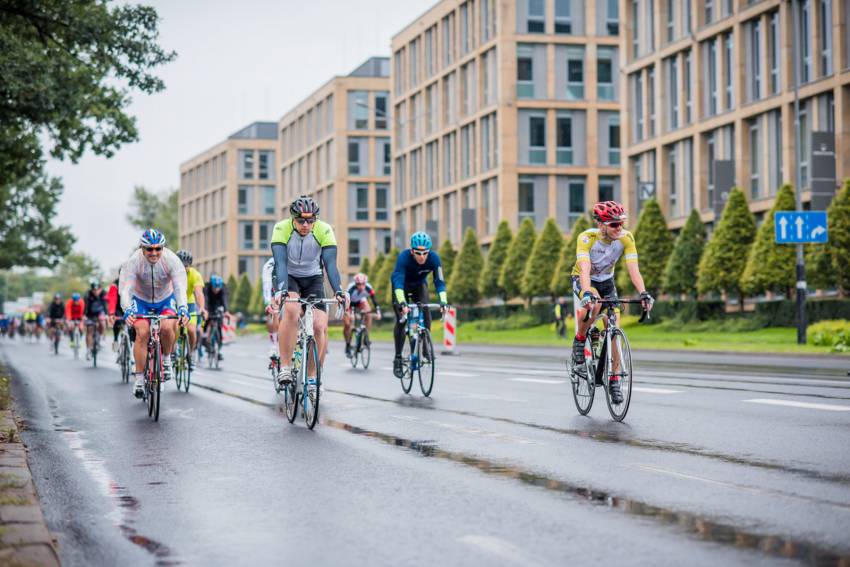 Tegoroczny Bike Challenge naprawdę wymagał cierpliwości. Najpierw – żeby sprawdzać kolejne zmieniające się prognozy pogody, z których jednak większość jasno wskazywała, że sucho nie będzie. Później na próbę uczestników wystawił organizator – poszczególne dystanse startowały z opóźnieniem. Wszystko dlatego, że początek trasy kolidował z jej końcem, więc trzeba było zaczekać na finisz ostatniego zawodnika ze startującego wcześniej dystansu 50 km. W końcu jednak poszły konie po (mokrym) betonie. 120 km przez czołówkę zostało pokonane z czasem ok 2 godzin 48 minut. Kałuże, padający deszcz i przejazdy kolejowe/tramwajowe skutecznie urozmaiciły walkę na dość płaskiej trasie. Organizacja i zabezpieczenie były na dobrym poziomie – minusy za pierwszy, niedostatecznie oznakowany bufet i kawałek wąskiej drogi przed finiszem.