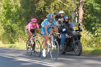 Choć mocne tempo na prowadzących w górę ulicach miasta nadawali pomocnicy di Luca’i, z peletonu zaatakował Tomasz Marczyński (Ceramica Flaminia). Swoją akcją sprowokował kolejnych kolarzy: Huberta Schwaba (Quick Step) oraz Dario Cioniego (Predictor Lotto). Kilkunastosekundowa przewaga ucieczki powodowała kolejne kontrataki i wzmocnienie tempa peletonu. Przed szczytem Orlinka w czołówce pojawił się również Thomas Voeckler (Bougues Telecom), jednak naciągnięty przez Liquigas peleton miał już uciekinierów w zasięgu ręki. Po doścignięciu ucieczki i chwili odpoczynku na krótkim zjeździe przed ostatnią dziś górską premią zaatakował Bjorn Leukemans. Belg z Predictor Lotto znakomicie radził sobie na zjazdach do Miłkowa, zyskując cenne sekundy nad peletonem i wykorzystując prowadzenie motocykla wiozącego kamerzystę. Gdy teren się wywłaszczył, peleton jeszcze wzmocnił tempo a na prowadzeniu Leukemansa zastąpił Cedric Vasseur (Quick Step).