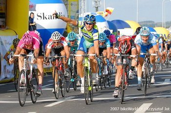 Wjeżdżając do Jeleniej Góry na czele pojawili się kolarze Caisse d’Epargne oraz, jak codziennie Liquigas. Pierwsza grupa, peleton po selekcji na podjazdach na Orlinek liczyła jednak około 70 kolarzy. Z tyłu zostali m.in. Napolitano i Weylandt, jednak zwycięzca etapu do Świdnicy, Murilo Fischer dołączył do czołówki na zjazdach. W samej końcówce na ulicach Jeleniej Góry bardzo mocno przyspieszyli zawodnicy Milram, silnie naciągając peleton. Za ich plecami czaili się Di Luca, Wegemann (Gerolsteiner) i Ballan (Lampre). Pod bramą oznaczającą 1km do mety w swoim stylu od peletonu odskoczył Fabian Cancellara (CSC). Atak Szwajcara skasowali kolarze Lampre, jednak ich pracę wykorzystał Filippo Pozzato (Liquigas). Włoch na wcześniejszych etapach pomagał Fischerowi, jednak dziś, gdy typowi sprinterzy byli zmęczeni podjazdami pokazał pełnię swoich możliwości. Pozzato o błysk szprychy wyprzedził Joaquina Rojasa (Caisse d’Epargne). Nowym liderem wyścigu został Muliro Fischer, również z Liquigas - Gaspol. Jest to zatem wyjątkowo udany dzień dla tej drużyny.