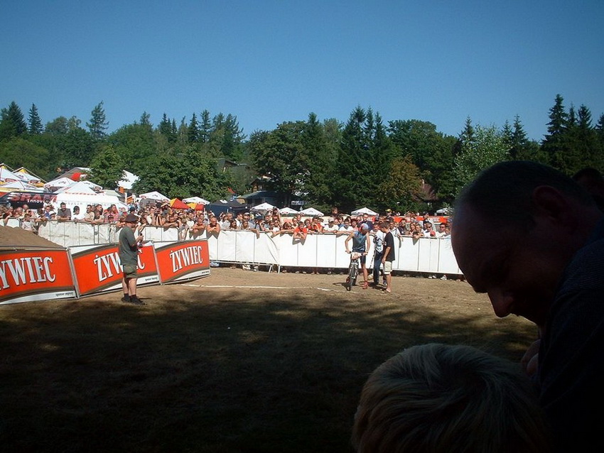 Raz w roku na Szrenickim stoku, czyli największa, najstarsza i ciesząca się niesłabnącą popularnością „oszołomów rowerowych wszelkiej maści odbyła się po raz siódmy. Ekipa Pawła Kibinia z roku na rok jest coraz bardziej profesjonalna w swoich poczynaniach, co wyraża się nie tylko w rosnących cenach za powierzchnię wystawienniczą na targach, ale przede wszystkim znakomitą i w zasadzie nie budzącą najmniejszych zastrzeżeń organizacją. Przy tym wszystkim cały czas udaje się zachować odpowiedni klimat całej imprezy, co z kolei skłania do przyjazdu na Festiwal co roku nowe osoby. Tym samym koło się zamyka i w sumie otrzymujemy sposób na świetną zabawę dla uczestników, reklamę dla sponsorów oraz zarobek dla organizatorów, czyli… wszyscy są zadowoleni :-)W tym roku wszystko zaczęło się już w środę, ponieważ właśnie tego dnia rozpoczęły się oficjalne treningi na zjazdowej trasie Pucharu Polski. Dodatkowo w poprzedni weekend w pobliskim Świeradowie rozgrywane były w ramach cyklu Bikemaraton Mistrzostwa Polski w maratonie MTB, dlatego też nagły „zalew” rowerzystów nie był tak widoczny jak w poprzednich latach.