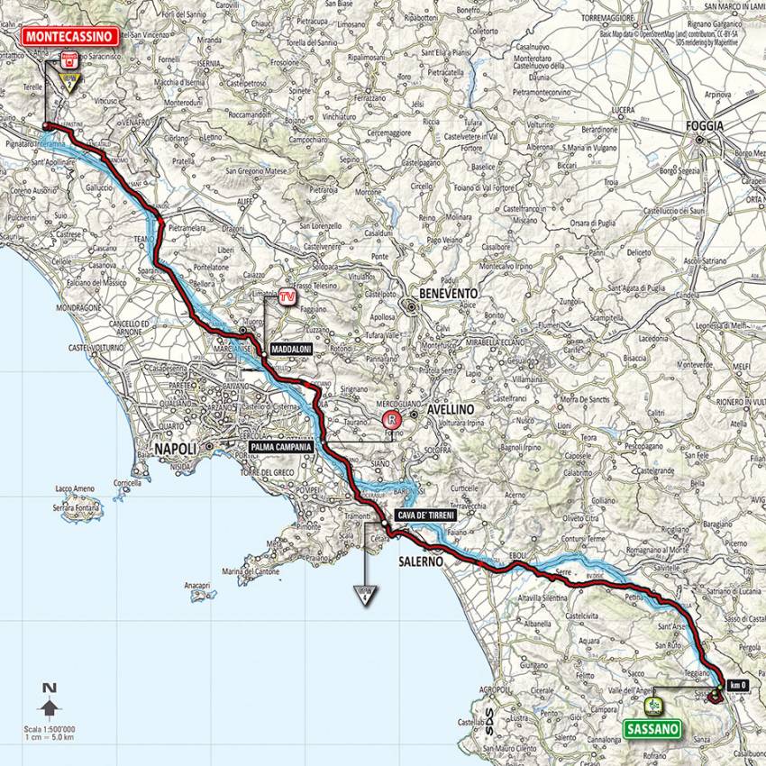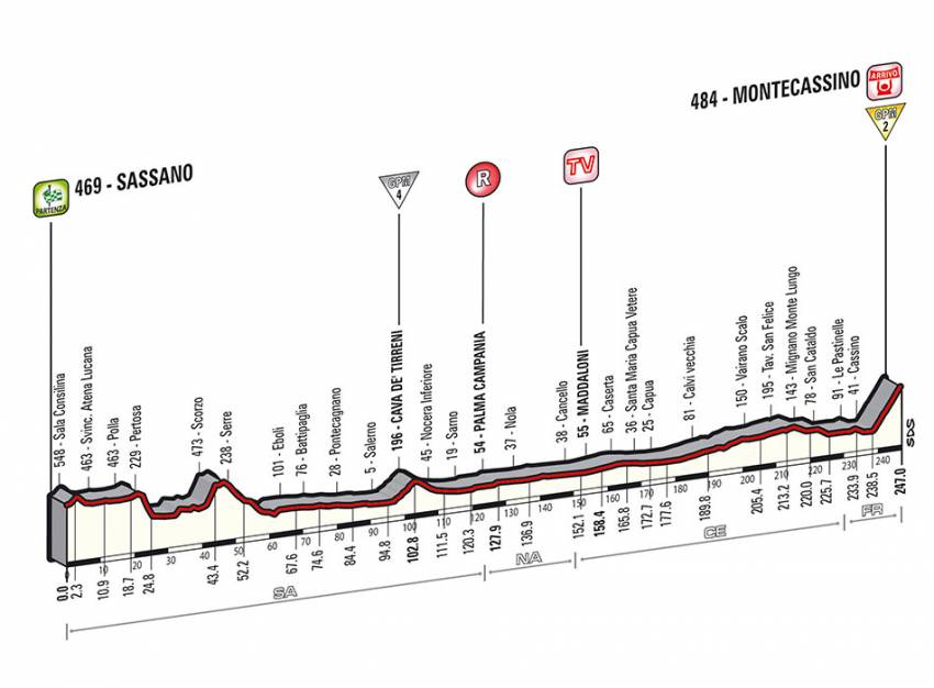 Odcinek z Sassano do Montecassino, choć w dużej mierze płaski, wcale nie będzie łatwy. Kolarze po starcie z Sassano pokonają aż 247 kilometrów, zakończonych wspinaczką właśnie na wzgórzu, na którym toczyły się walki w trakcie II Wojny Światowej.