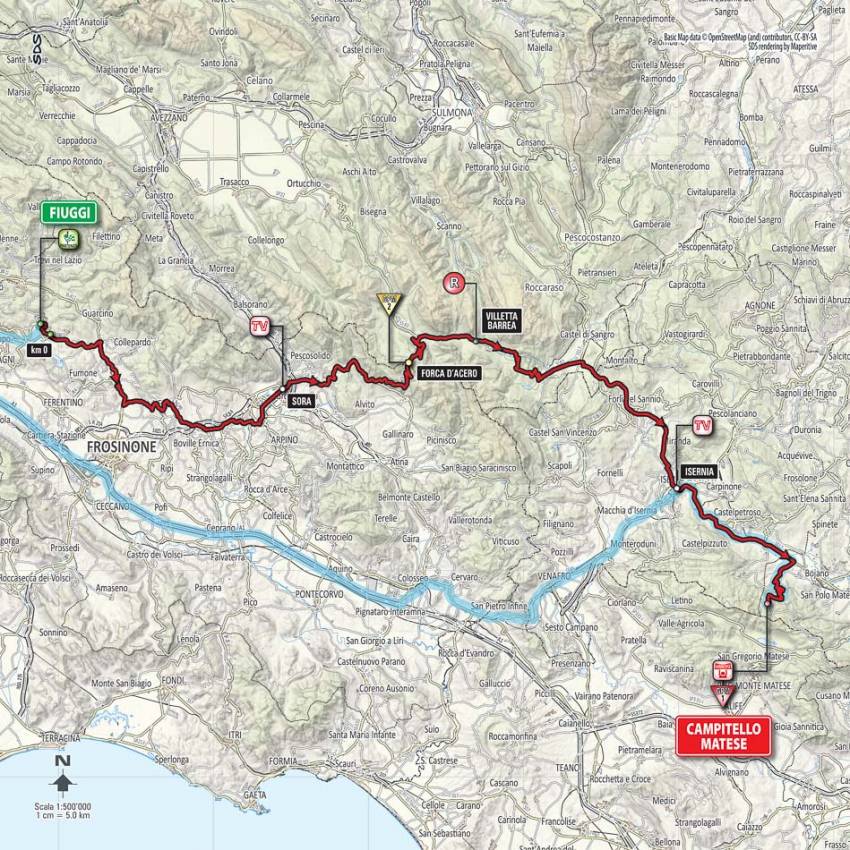 Kierując się cały czas na południe kolarze udadzą się z Fiuggi do Campitello Matese, po drodze pokonując dwa solidne podjazdy, które mogą wpłynąć na losy klasyfikacji generalnej. Choć nie są to wysokie góry, to jednak podjazdy w Apeninach mogą zmęczyć kolarzy, zwłaszcza, że dzień wcześniej pokonywać będą ponad 260 kilometrów.