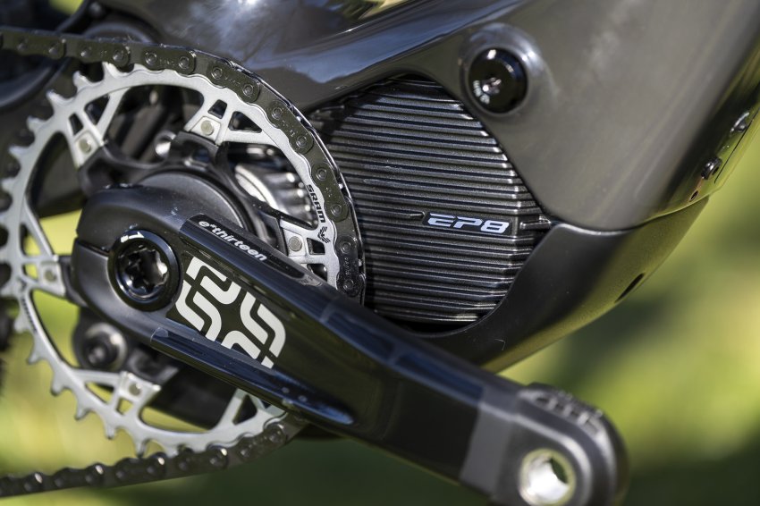 Cannondale Moterra SL wspomagana jest za sprawą jednej z najmocniejszych jednostek na rynku, czyli Shimanowskiego silnika EP-801. Maksymalny moment obrotowy generowany przez ten motor wynosi 85 Nm, a peak mocy to 600W. Amerykanie zdecydowali się na EP8, ponieważ to najlżejszy z mocnych silników, jaki jest dostępny na rynku. Poza wagą ważne są też gabaryty, jest on na tyle mały, że nie wpływa negatywnie na kinematykę zawieszenia, a przy okazji bardzo dobrze wygląda.