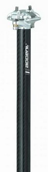 sztyca, której cześć główna - rura wykonana została w całości z włókna węglowego, co zapewnia wysoki stopień tłumienia drgań. Jarzmo dla odmiany wykonane z kutego stopu aluminium. Siodło przytwierdzane jest dwoma śrubami, co umożliwia dokładną regulację kąta nachylenia siodełka. Długość: 350 mm, średnica 27,2 mm. Masa: 180 g. Cena: 169 zł.