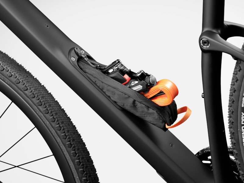 Komfort i terenowe możliwości są duże nie tylko dzięki odpowiedniej geometrii i amortyzacji. Sporo osiągnąć można dzięki szerokim oponom. Nowy Topstone ma zwiększony prześwit i pomieści teraz 52 mm w ramie, 56 mm w sztywnym widelcu i 47 mm w przypadku widelca amortyzowanego Lefty Oliver. Wspornik siodła to klasyczne 27,2 mm, co pozwala na zastosowanie komfortowych karbonowych sztyc z dużymi możliwościami wyginania się i dawania nam kolejnej porcji amortyzacji. Alternatywnie można zamontować tu droppera, Topstone oczywiście ma wewnętrzne prowadzenie przewodu. Rama ma też wewnętrzny schowek Stashport (drzwiczki są w kolorze ramy), a każdy model otrzymuje w zestawie StashBag, czyli torebkę na niezbędne akcesoria, która pozwala zorganizować ,,bagaż” przewożony wewnątrz dolnej rury.