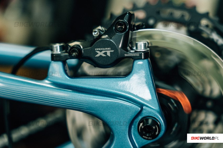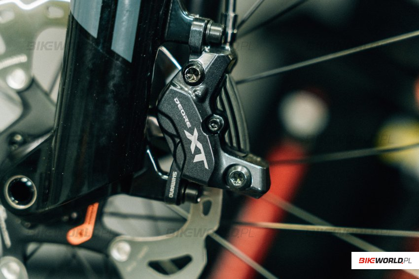 Kropką nad i w Deore XT M8200 są nowe hamulce. Wzorem XTR’a również korzystają z nowego oleju mineralnego o niskiej lepkości, który poznacie po pomarańczowym kolorze. Jego zalety riderzy mają docenić szczególnie podczas jazdy w niskich temperaturach. W ramach nowego układu hamulcowego możemy budować hamulce XT w oparciu o jedne klamki BL-M8220 i 3 różne zaciski – dwutłoczkowe BR-8200, czterotłoczkowe BR-8220 i dwutłoczkowe Flat Mount BR-MT805. Klamki nowego XT korzystają z technologii Ergo Flow, mają oś obrotu klamki przesuniętą o pół centymetra bliżej kierownicy, a do tego zmodyfikowany został też mechanizm Servo Wave. Wszystko to powinno skutkować większą mocą i lepszą płynnością dozowania siły hamowania. Na koniec warto jeszcze dodać, że czterotłoczkowe zaciski mają dwie pary tłoczków o różnej średnicy i do tego zacisku przygotowano też nowe, cichsze okładziny hamulcowe.