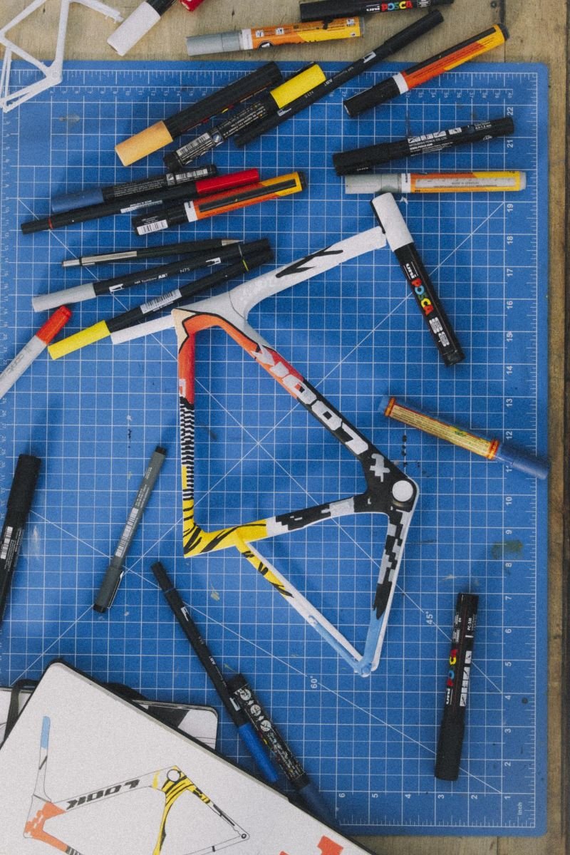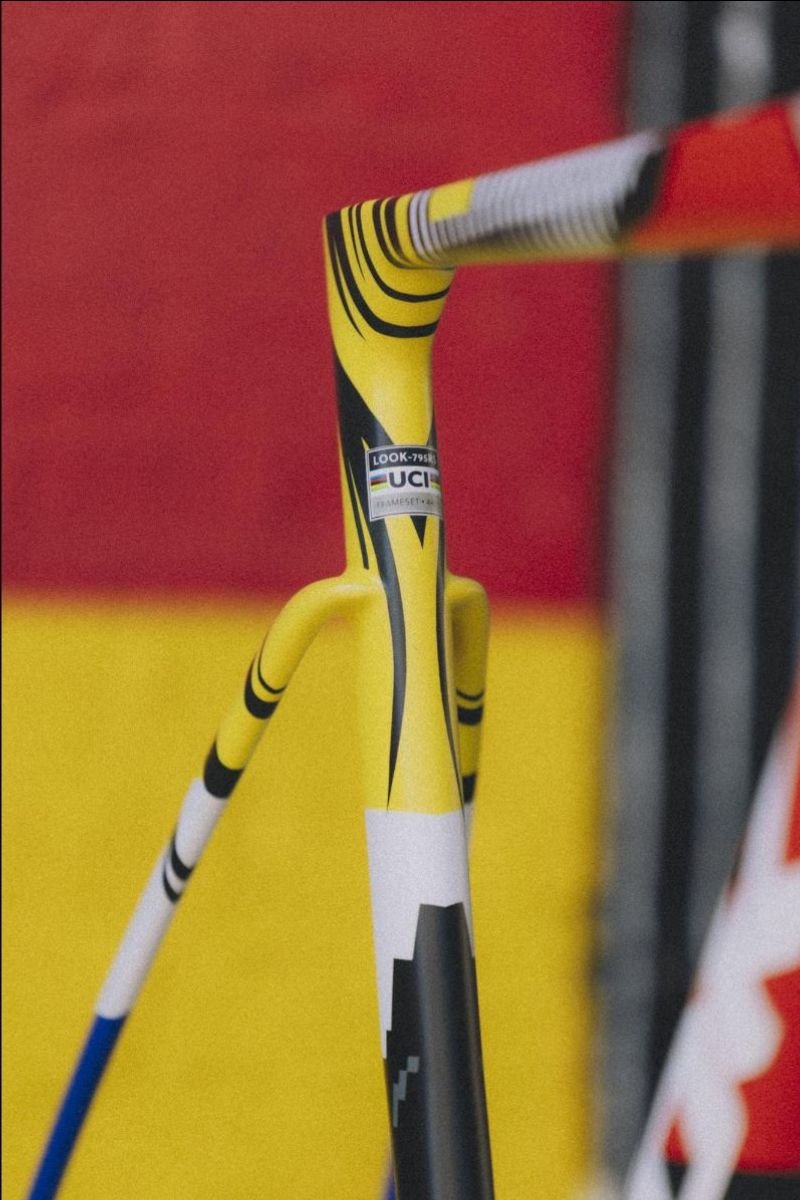 Płótnem na którym tworzył Jay Kaes tym był w pełni carbonowy frameset LOOK 795 Blade RS, który zbudowano przy użyciu najbardziej zaawansowanych włókien Ultra High Modulus - jego cena to bagatela 43 000 zł, a w sprzedaży (podobno) zostało jedynie 15 sztuk tego dzieła sztuki współczesnej. Na zestaw składa się: rama, kierownica, sztyca + dodatki: 1x Para ekskluzywnych pedałów Keo Blade Ceramic Ti, Ekskluzywny plakat, Księga historii marki Look, Księga DNA marki.