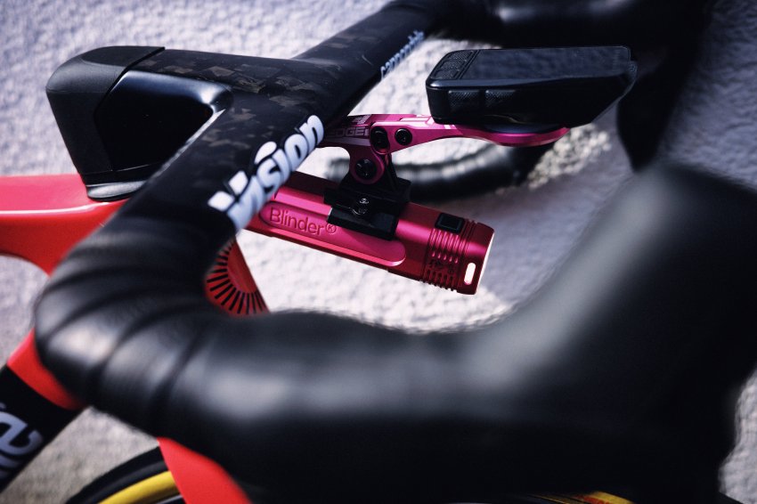 W różowej kolekcji produktów znalazła się przednia lampka Blinder 900 EF - mocna przednia lampa o mocy aż 900 lumenów, które dokładnie doświetlają drogę przed nami (potrafi doświetlić do 100 metrów terenu przed rowerem). Posiada zaawansowany akumulator pozwalający pracować do 2 h przy pełnej jasności i aż do 120 h w trybie Eco Flash. Generalnie Blinder 900 to 6 różnych programów pracy, szybkie ładowanie przez USB-C, pełna wodoodporność IP67, LED-owy wskaźnik naładowania baterii czy boczne panele (okienka), które poprawiają naszą widoczność także z boku (skrzyżowania, przejazdy rowerowe, etc.).