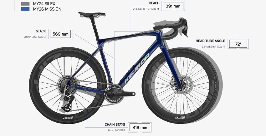 W jednej kwestii Merida poszła jednak pod prąd obecnym trendom. W dobie prześcigania się o jak największy prześwit na opony zarówno w maszynach uniwersalnych czy tych nastawionych na eksplorację, ale również w rasowych wyścigówkach, Tajwańczycy przygotowali na 2026 rok z prześwitem mniejszym niż w Silexie, bo wynoszącym skromne 40 milimetrów.