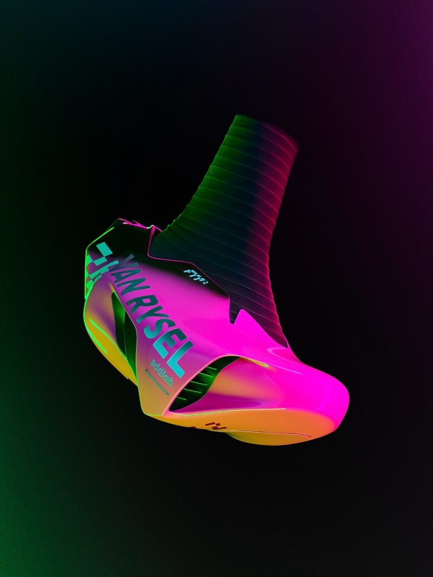 Podobnie jak w przypadku roweru, szybkie spojrzenie na but pokazuje, że priorytetem była tutaj aerodynamika. Oprócz eliminacji wystających pokręteł czy sznurówek, skorupa zewnętrzna czerpie z przemysłu lotniczego i ma naśladować profil skrzydła samolotu widziany z boku. Według Van Rysela, boczny otwór wentylacyjny z wewnętrznymi żebrami „wychwytuje wzburzone powietrze, aby zmniejszyć opór, ale także wykorzystuje te żebra do napędzania wewnętrznego systemu wentylacji”. System ten chłodzi zarówno stopę rowerzysty, jak i wewnętrzny silnik sznurowania.