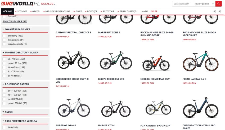 W poprzednim roku, odpowiadając na dynamiczne zmiany na rynku oraz rozwój oferty producentów, odświeżyliśmy nazwy i podział kategorii, aby jak najlepiej odzwierciedlały aktualne typy rowerów. Dodatkowo katalog wzbogaciliśmy o liczne nowe filtry dedykowane rowerom elektrycznym. Teraz można je selekcjonować m.in. według producenta silnika, pojemności akumulatora czy maksymalnego momentu obrotowego, co znacznie ułatwia wybór odpowiedniego modelu.