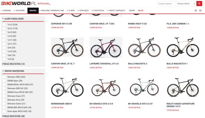 Katalog.bikeworld.pl to szerokie spojrzenie na rynek rowerowy. Serwis umożliwia nie tylko przeglądanie ofert poszczególnych producentów, ale także precyzyjne zawężanie wyników i porównywanie wybranych modeli. Rozbudowany system filtrów pozwala wyszukiwać rowery według typu i kategorii, zakresu cenowego czy konkretnych elementów wyposażenia – takich jak grupa napędowa lub skok zawieszenia. Całość dopełnia przejrzysta porównywarka, dzięki której w jednym miejscu zobaczysz zestawienie wybranych modeli.