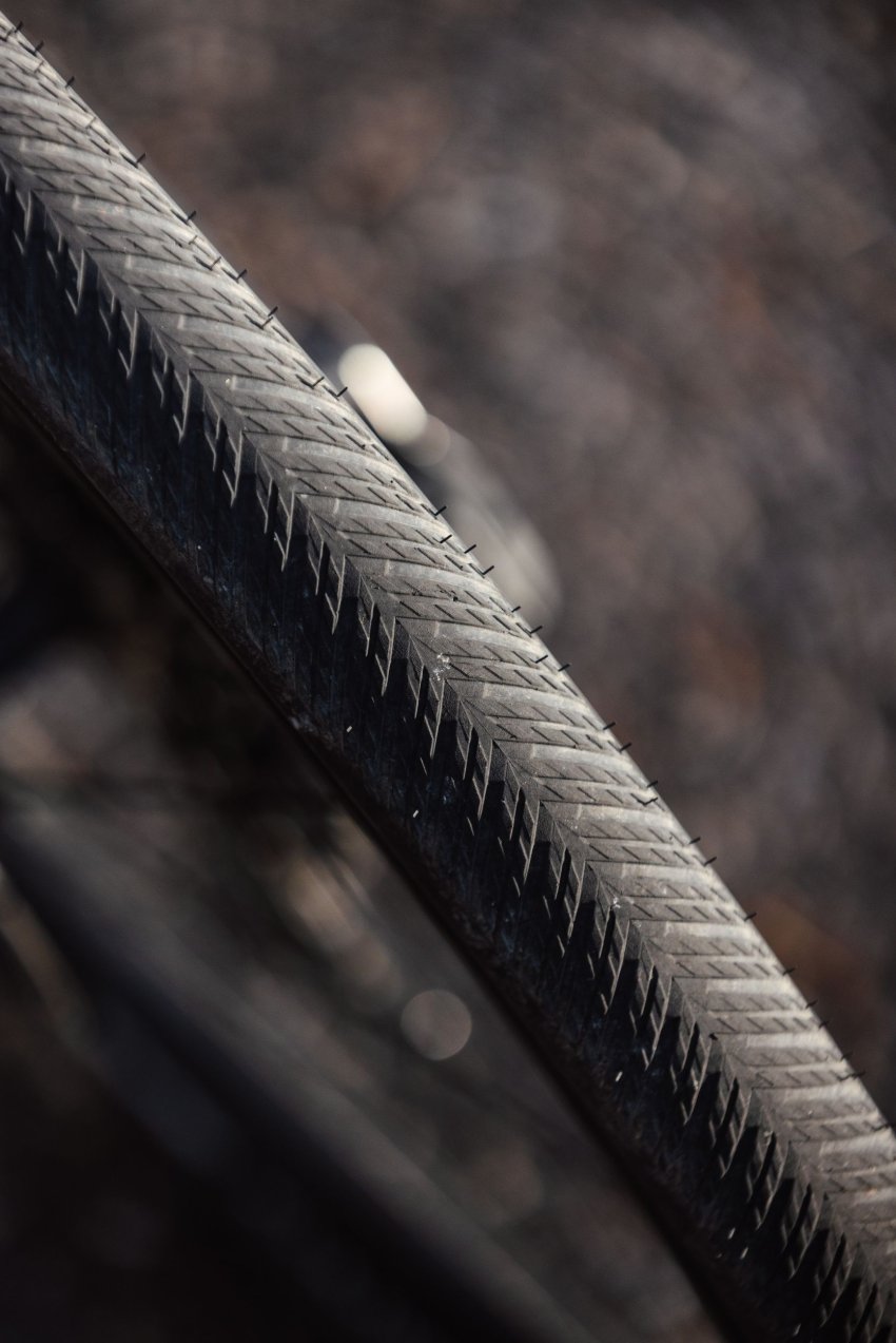 Terra Competition wyróżnia się ciekawym, dość łysym wzorem bieżnika zoptymalizowanym pod kątem jazdy po szutrze w warunkach od suchych do lekko wilgotnych. Na błoto rzecz jasna się zbytnio nie nadają. Centralna część bieżnika tworzy niemal ciągłą powierzchnię, co sprzyja wysokiej prędkości jazdy na wprost i redukcji oporów toczenia, natomiast wyraźniejsze klocki boczne zapewniają stabilność i kontrolę, gdy manewrujemy, czy pokonujemy zakręty.
