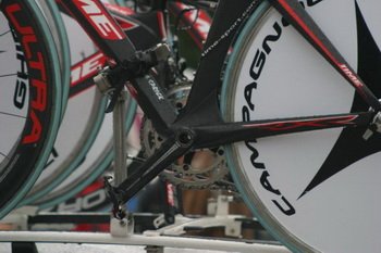 bardzo podobnego osprzętu używa ekipa Caisse D'epargne. Podstawowa różnica to koła - tym razem są to Fulcrumy Racing Zero Red. To jedne z niewielu dziś jeszcze aluminiowych kół w peletonie!