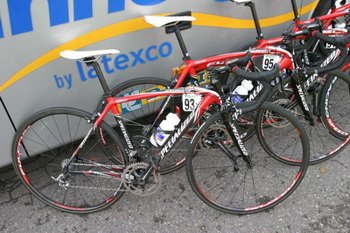 Tarmacach SL jeździ także Gerolsteiner, ale na innym wyposażeniu. Komplet Shimano Dura-Ace uzupełniony jest o karbonowe koła z tej samej grupy (i szytki Shwalbe) oraz dodatki Ritcheya i Selle Italia. Najciekawsze w wyposażeniu były korby SRM z ramionami Dura-Ace, a służące do pomiaru mocy. Zazwyczaj zawodnicy stosują je tylko w trakcie treningów, czyżby podobnie traktowali TdP?