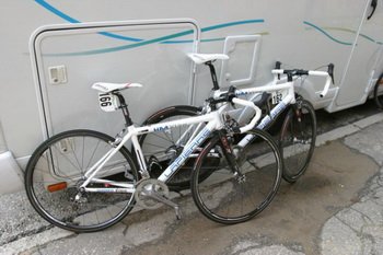 I jeszcze raz się potwierdza, że zawodnicy niekoniecznie jeżdżą na prototypowym sprzęcie, bowiem grupa Predictor Lotto używa modelu Noah, podczas gdy nowość na sezon 2008 to lżejszy Helium. Modele są w zasadzie do siebie bardzo podobne, różnią się detalami. Ważny jest jednak fakt, że zaprezentowany w 2006 roku Noah jest cięższy - rama o całe 200 gramów, waży bowiem 1100 gramów. Identyczna jest przedłużona sztyca podsiodłowa, ta same geometria, a nawet w pełni karbonowe widelce. W Heliumie jednak główka sterowa mieści na dole łożysko o rozmiarze 1,5 cala i ma łożyska sterowe oraz środkek suportu zintegrowane bezpośrednio w ramie. Mały smaczek - w Noahu haki są aluminiowe i kute, w Heliumie karbonowe. Nasz Noah wyposażony jest w Campagnolo Recorda, włącznie z kołami, choć tu mała niespodzianka - wielu zawodników używało aluminiowych Eurusów. Opony to mało popularne Vredesteiny. Pedały Look Keo i siodła Selle San Marco dopełniają obraz.
