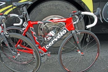 W literaturze fachowej można przeczytać, że zawodnicy temu CSC, tacy jak braca Schleck, używają przynajmniej 4 różnych ram klasycznych i dwóch czasowych. Jednak oglądając te, które przyjechały na TdP dało się zauważyć, że najczęściej stosują dwie z nich - Soloist Team (aluminiowy) i Soloist Carbon. Tu także można zobaczyć cechy typowe dla wszystkich Cervelo - jej projektanci zwracają wyjątką uwagę na stawianie przez sprzęt jak najmniejszych oporów aerodynamicznych. Stąd rozwiązania typu wewnętrzne prowadzenie pancerzy, czy ekstremalnie wąska główka ramy i górna opadająca rura ramy z przekrojem w kształcie kropli wody. Dochodzą do tego wyjątkowe cechy jak możliwość zmiany kąta ustawienia sztycy podsiodłowej, by zoptymalizować pozycję w trakcie czasówek. SLC-SL to w gruncie rzeczy superlekka wersja modelu Soloist Carbon, o 200 gramow lżejsza, tyle, że przy okazji jeszcze bardziej aerodynamiczna. Według firmy sama rama waży nie więcej niż 1000 gramów. Rowery CSC były wyjątkowo oryginalnie wyposażone bo, oprócz Dura-Ace można było w nich zobaczyć korby FSA, koła Zippa, pedały Speedplay (co zważywszy na ich mikrą wielkość jest wyjątkowo interesujące).