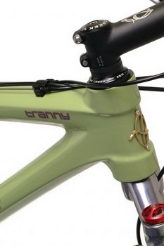 Tranny to oczywiście manifestacja dizajnu typowego dla Ibisa, przejawiającego się w prawdziwie organicznych formach. Wielka główka sterowa, rury z kantami, niamal każdy fragment ma ponadnaturalną średnicę. Żeby zamocować przerzutkę przednią, trzeba było fragment rury podsiodłowej odchudzić niemal dwukrotnie! Efekt tego całego szaleństwa to rama, która w rozmiarze średnim ma ważyć 1250 gramów. Zważywszy na zalety konstrukcji to niewiele. Cena ramy na rynku europejskim wynosi ok. 1700 euro, cały rower w podstawowym wariancie wyposażenia kosztuje ok. 3000 euro. Tyle, że to „podstawowe” wyposażenie to m.in. Fox F100 RLS, koła Mavika i komplet XT. Ibis oferuje też specjalny wariant wyposażenia nawany WTF (co tłumaczy się „what the fuck”), z którym rower ma ważyć tylko 8,5 kg.