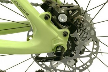 górnego zawiasu. Zabieg pozwala regulować długość tyłu o 15 milimetrów, tym samym umożliwia naciąg łańcucha, tak istotny w momencie, gdy ze zwykłego roweru chcemy zrobić singlespeeda. Przy okazji stają się zbędne wszystkie inne specjalne rozwiązania w stylu mimośrodowego środka suportu, napinacza czy też piasty. Rozwiązanie sprawia, że teoretycznie sprzęt staje się też zdatny do użytku z piastami wielobiegowymi.