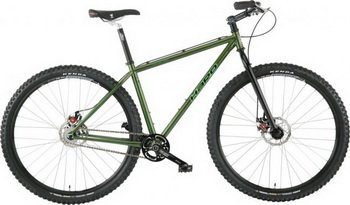 I w końcu moje ulubione rowery, czyli dwie Mary, oznaczone odpowiednio jako XC i SS. Rowery o tyle wyjatkowe, że nie dość, że stalowe, to jeszcze na koła 29-calowych. Wersja XC ma napęd 27-biegowy, jak Bóg przykazał, warian SS to prościutki jednobiegowiec, w dodatku ze sztywnym widelcem. Jedyne, czego mu nie pożałowano, to... hamulce tarczowe i grube opony Kenda Nevegal. Piękne, prawda?