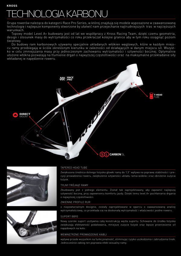 Topowy model Level A+ budowany jest od lat we współpracy z Kross Racing Team, dzieki czemu geometria, design i stosunek masy do wytrzymałosci co roku przekraczał kolejne granice, aby w tym roku osiagnac poziom swiatowy.