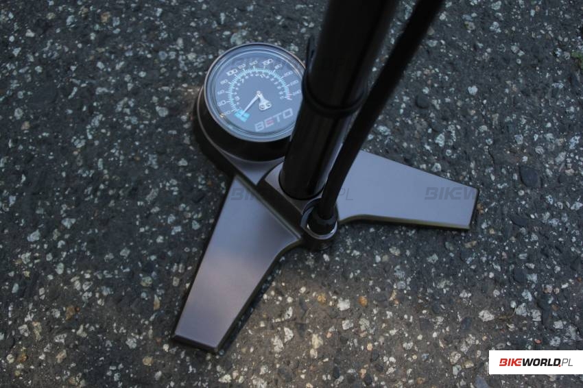 Najbardziej ciekawiło nas działanie gwintowanej głowicy. Instalacja jej przy wentylu jest bardzo prosta i intuicyjna – dociskamy głowicę do wentyla, po czym zaczynamy wkręcać. Kiedy wkręcimy ją maksymalnie, rozpoczynamy pompowanie. Rozwiązanie to może jest nieco mniej wygodne od bardziej powszechnych dźwigni, ale ma również plusy. Po pierwsze podczas używania pompki nie słyszeliśmy, by gdzieś uchodziło nam powietrze przez krzywo wsadzoną końcówkę – gwint praktycznie uniemożliwia taką sytuację. Po drugie końcówki z dźwignią po dłuższym czasie użytkowania lubią się wyrabiać, w następstwie czego przy dużych ciśnieniach zostają wystrzelone z wentyli – gwintowana końcówka BETO rozwiązuje i ten problem, załatwiając sprawę wystrzałów. Jedynym do czego można się nieco przyczepić jest fakt, że podczas odkręcania głowicy zazwyczaj trochę powietrza nam ucieknie, dlatego pompować trzeba z malutkim hakiem.