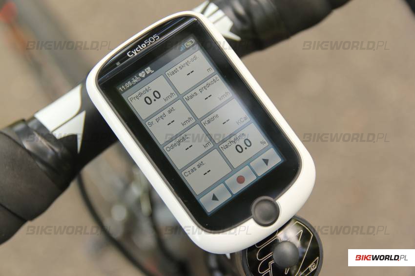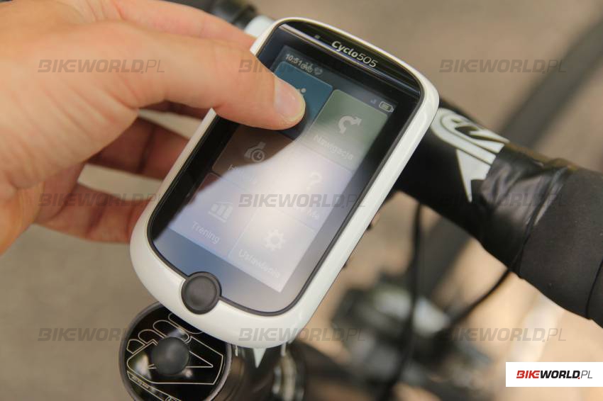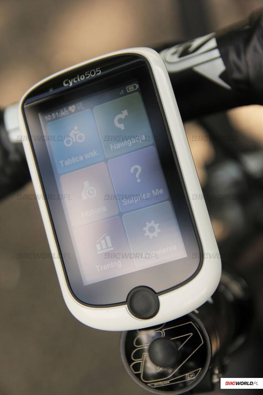 Dla osób, które dotychczas nie miały do czynienia z podobnymi wynalazkami, zaskoczeniem będzie dość spory rozmiar komputerka. Zdecydowanie największym elementem naszego Cyclo 505 jest dotykowy ekran - pozostałe przyciski skutecznie zredukowano do liczby: jeden (przycisk odpowiada za wychodzenie do poprzedniego widoku oraz włączania / wyłączania). Na wstępie zaznaczamy, że ekranik naszego MIO cechuje świetna czytelność, na którą nie wpływają warunki atmosferyczne - czy jest pochmurno, czy słońce pali z całym impetem, nie mamy problemu z widocznością wskazań.