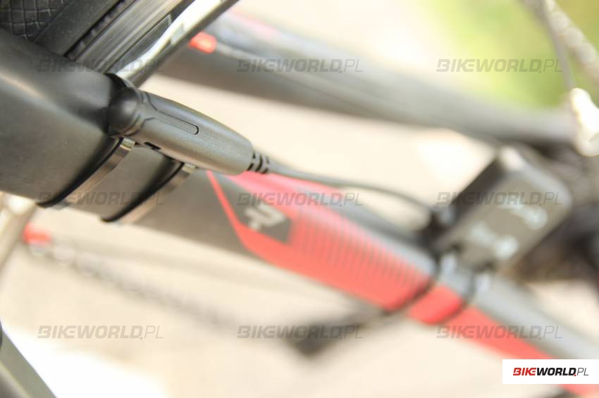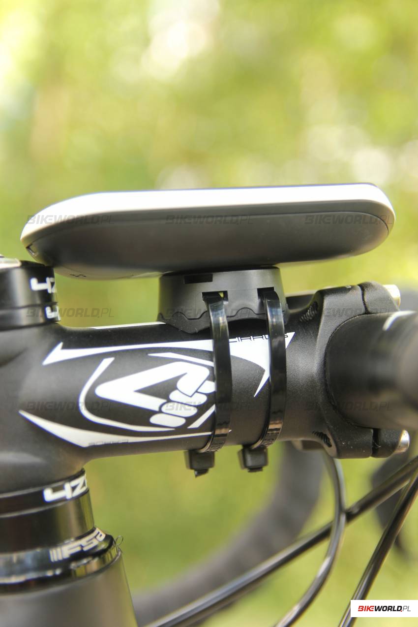 W zestawie otrzymujemy uchwyt do montażu licznika na kierownicy lub mostku - gniazdo bardzo, ale to bardzo solidnie trzyma komputer na swoim miejscu, dlatego zapomnijcie o obawach związanych ze zgubieniem licznika gdzieś na wyboistej drodze. Uchwyt na kokpicie mocujemy najbardziej ukochanym przez wszystkich kolarzy przedmiotem - opaską zaciskową (pseudonim trytka) - z jednej strony jest to okej, bo uchwyt na kierownicy zamocowany jest solidnie (pod spodem kładziemy specjalną gumową podkładkę i mocno zaciskamy opaską), ale z drugiej strony... nie mamy do dyspozycji 2 uchwytów (trzeba będzie dokupić), a taki montaż wyklucza swobodne przekładanie licznika pomiędzy rowerami. Pewnie i tak większość z Was pomyśli od razu o dokupieniu uchwytu, który wysunie nasz licznik przed kierownicę (takowy istnieje), ale mimo wszystko fajnie byłoby mieć tu do dyspozycji jeszcze jedno gniazdo lub jakiś bardziej mobilny wariant.