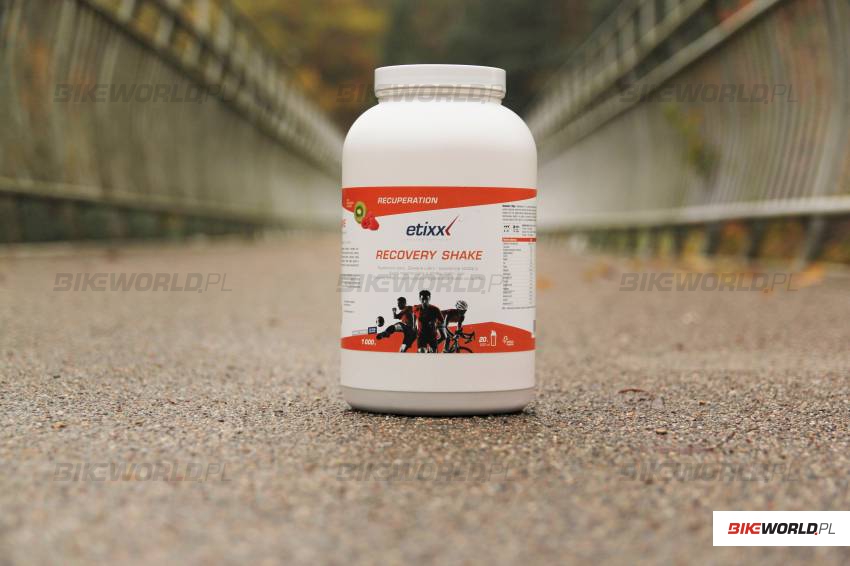 Wartości odżywcze - producent rekomenduje rozpuszczenie 3 miarek (50 g) w 500 ml wody (lub mleka) po treningu podtrzymującym oraz 6 miarek (100 g) po najbardziej intensywnych jednostkach treningowych. 3 miarki preparatu dostarczają nam 37 g węglowodanów oraz 8 g białek - to idealny stosunek, odpowiedni potreningowego zapotrzebowania. 1 kg opakowanie (159 zł) Recovery Shake wystarcza więc na około 20 porcji. Poza wartościami energetycznymi w potreningówce Etixxa znajdziemy też sporo witamin i minerałów - jeśli chodzi o te drugie, to warto wymienić chociażby żelazo, istotne w odbudowie nadszarpniętych treningowo parametrów krwi. Podobnie jak w przypadku poprzedników, tak i Recovery nie zawiera aspartamu.