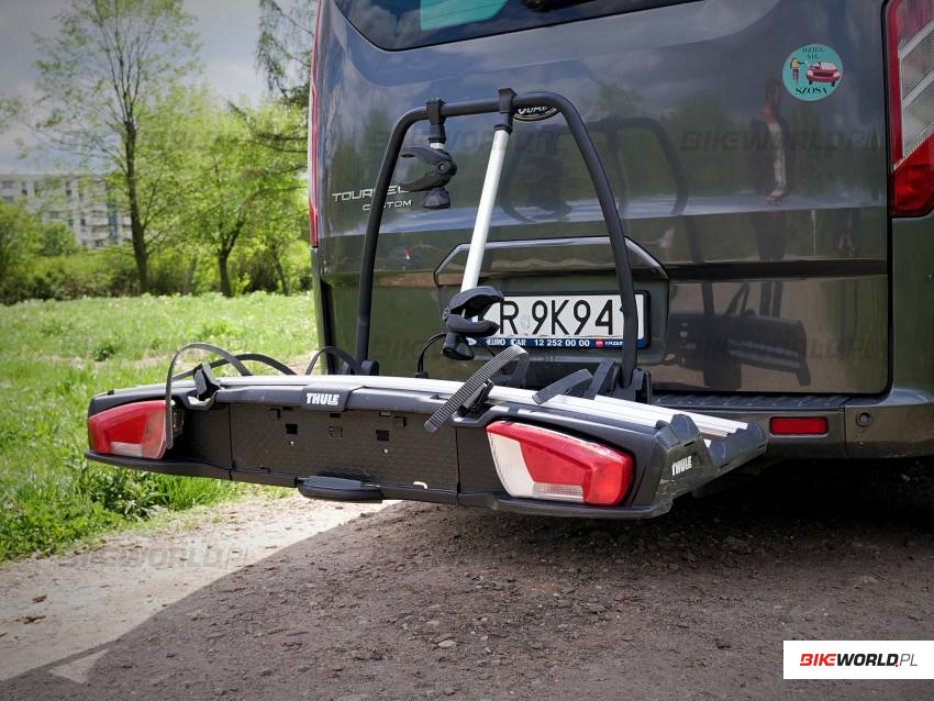 Bagażnik pozwala na przewóz trzech rowerów, jednak można jego ładowność zwiększyć o jeden dodatkowy rower za pomocą akcesoryjnej prowadnicy. Thule przewidziało jako opcję w swoich akcesoriach też specjalny kufer BackSpace XT, który po zamocowaniu zwiększa nam przestrzeń bagażową samochodu o 300 litrów. Można w nim przewozić np. przyczepkę rowerową dla dziecka.