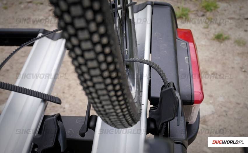 Prowadnice dla rowerów wyposażono w długie paski, które poradzą sobie z zablokowaniem opon o średnicy nawet 4,7 cala, więc wszelkiej maści rowery fatbike są tu jak najbardziej mile widziane. Górne uchwyty do ramy są regulowane i dzięki kliknięciu dają znać o odpowiednim momencie dokręcenia zatrzasku. Sam bagażnik, jak i uchwyty do rowerów, wyposażono w zamki utrudniające życie amatorom cudzej własności.