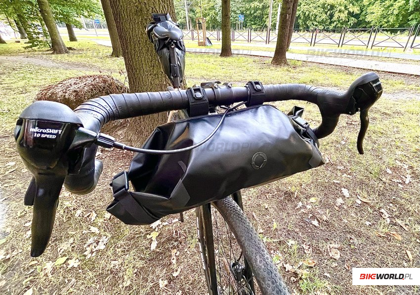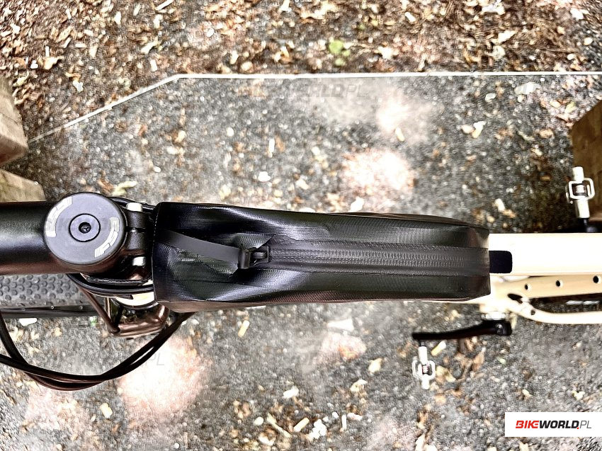 Oczywiście elementarną kwestią jest dobór sakw do rozmiaru roweru. W naszym przypadku wszystko leżało idealnie, a sakwy zamontowane "w ramie" w ogóle nie przeszkadzają podczas jazdy. Jedyny problem jaki możecie napotkać to konieczność wysokiego unoszenia nogi przy zsiaaniu z roweru, bo naturalnie tylna, długa sakwa wystaje nieco ku górze, przez co delikatnie utrudnia zsiadanie z roweru. Prawidłowo zamontowana torba na kierownicy również wpasowuje się gabarytowo, a jedyną niewielką przeszkodą w montażu mogą stanowić kable od klamek wychodzące na zewnątrz.