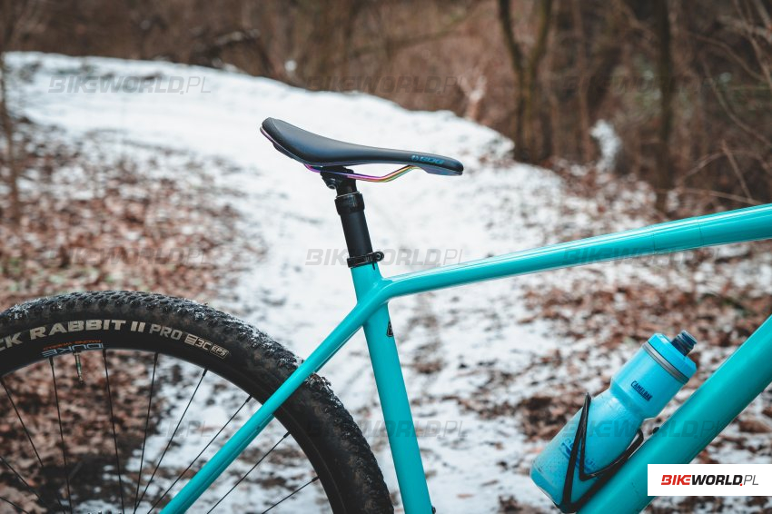 Testy SDG przypadły na okres jesieni i zimy, więc wybór padł na hardtaila XC, do którego postanowiliśmy go zamontować. W sumie to nawet lepiej, bo w końcu przy braku zawieszenia to zawsze lepszy ,,wytłuk”... Oczywiście jeszcze kilka lat temu pukali byśmy się w czoło patrząc, jak ktoś montuje droppera ze skokiem 200 mm do sztywniaka przeznaczonego do XC, ale dziś nikogo to już nie dziwi, a w kolekcjach producentów normą staje się, że w rowery do cross-country mają po 150-170 mm skoku, trailówki po 200 mm, a maszyny dedykowane do enduro nawet więcej… Skróciliśmy więc skok do 180 mm żeby już nie przesadzać i zabraliśmy się za montaż do ramy.