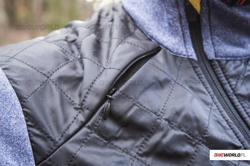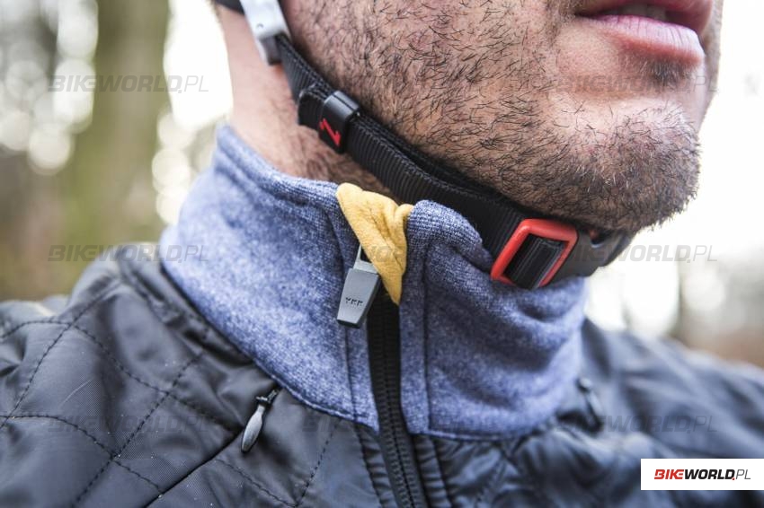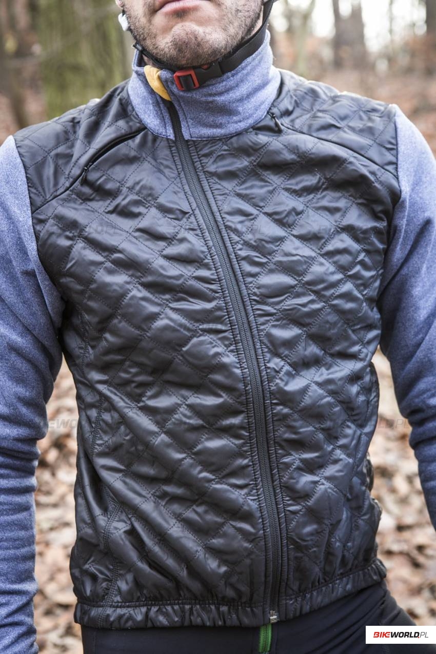 O utrzymanie temperatury ciała w trakcie jazdy dbają charakterystyczne, zwracające uwagę panele chroniące przed wiatrem, które umiejscowione zostały w przedniej części kurtki. W okolicy obojczyków znajdują się ponadto panele wentylacyjne, które posiadają zamknięcie na zamek. Ochronę przed zimnym wiatrem ocenić możemy na 5 z minusem. Jest dobrze, ale najlepsze produkty z jakimi mieliśmy do czynieni były minimalnie lepsze. Określenie kurtka zimowa w tym przypadku jest jednak trochę na wyrost i dotyczy raczej francuskiej zimy, niż naszej polskiej, gdzie temperatury nie rzadko spadają poniżej -10 stopni. Kurtka Heidi jest raczej produktem przeznaczonym na zimniejsze jesienne dni, ewentualnie zimową odwilż. W połączeniu z wełnianą termoaktywną koszulką Cafe du Cycliste, którą również przetestowaliśmy, kurtka Heidi sprawdzi się przy temperaturze ponad 5°C.