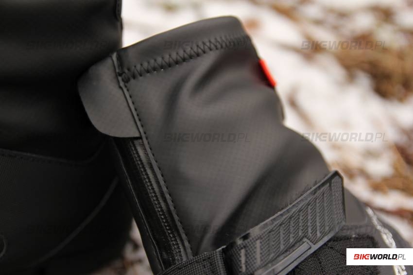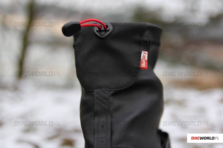 Bontrager w walce z wilgocią z zewnątrz radzi sobie perfekcyjnie – but jest praktycznie w całości odporny na wodę i świetnie uszczelniony, co widać gołym okiem chociażby w miejscu solidnie wykończonego suwaka. Woda po zewnętrznej części „Dziadka Mroza” spływa jak po kaczce, dzięki membranie OutDry z jej ciekawą strukturą. Dolna część buta to już w ogóle konstrukcja pancerna. O ile ekstremalnych mrozów w okolicach dziesiątki na minusie nie było nam dane zaznać, to w mokrych warunkach najeździliśmy się aż za dużo… ani razu nie poczuliśmy wilgoci w bucie. OMW to w tym względzie geniusz…