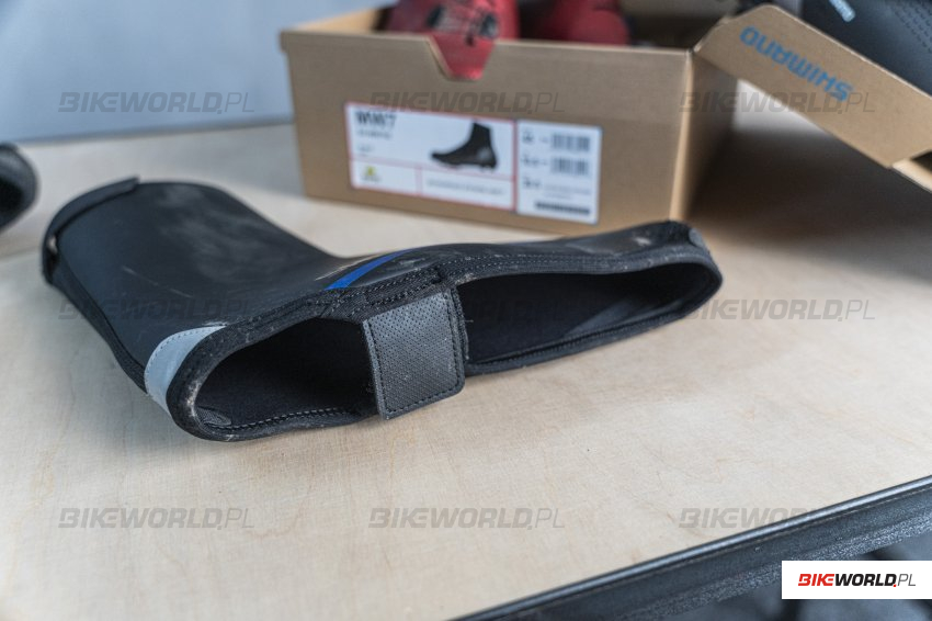 Dla ułatwienia zakładania mają rzep od spodu (od strony podeszwy). Poza tym z tyłu znajduje się duży i solidny suwak renomowanej marki YKK oraz rzep na górze. Całość uzupełniają małe, ale ważne detale. Choćby wzmocnienie palców, które - co znamy ze starszych modeli Shimano służących nam lata - jest naprawdę trwałe. Wiadomo, biegać się w tym nie da, ale jakość wykonania i wykończenia stoi tu na wysokim poziomie. Kolejną ważną wstawką są odblaskowe panele z tyłu mające zwiększyć nasze bezpieczeństwo podczas jazdy w ruchu drogowym. Warto jeszcze wspomnieć, że testowany przez nas model jest dedykowany do butów pod terenowe pedały SPD i podeszwy z bieżnikiem. Natomiast w kolekcji jest też odpowiednik pod szosowe obuwie. Choć ten też spokojnie podchodzi pod buty szosowe, tyle że nieco gorzej kryje ich podeszwę względem wariantu dedykowanego konkretnie pod obuwie kategorii road.