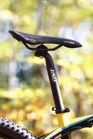 Uzupełnieniem kompletu są aluminiowe i wytrzymałe komponenty Kalloy: kierownica, mostek i sztyca. Gumowe chwyty są dość wygodne, a ich dodatkowym atutem jest blokada. Siodło San Marco Ponza Power to wysoki, 200-gramowy model (339zł), który jest bardzo wygodny (przynajmniej dla nas) i odznacza się sportową budową (pokrycie Microfeel, wypełnienie Bio Foam). Zainwestowanie w bardzo dobry model siodła w Photonie oznacza, że Medano stawia na wygodę swoich użytkowników!