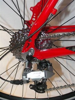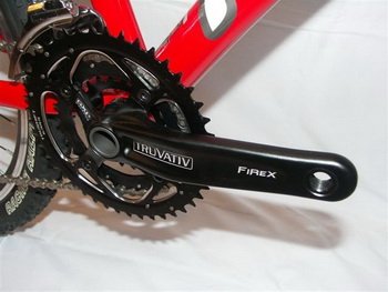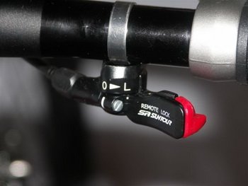 Kolejnym elementem, który przykuł moja uwagę była manetka blokady skoku amortyzatora. Wyposażona jest z dwie dźwigienki, przy czym większa (czarna) służy do usztywniania, natomiast mniejsza (czerwona, umieszczona pod spodem tej większej) odblokowuje sztuciec. Blokada nie jest jednak całkowita. Axon S RL po mimo jej włączenia ugina się ok. 2 cm. Bardzo ucieszyła mnie również korba Truvativ z zintegrowaną osią. Moim zdaniem, dobrze, że odchodzi się powoli od pakietów ISIS, które zyskały złą sławę, jako sprzęt dość zawodny.