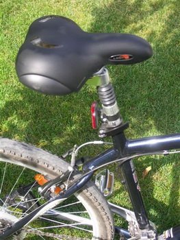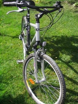 Za hamowanie odpowiedzialne są „karbonowe” szczęki Alhonga SNG 6011AD i wielkie klamki Tektro. Siła tego zestawu nie powala na kolana, ale pozwala bezpiecznie i szybko wytracić prędkość w każdej właściwie sytuacji. Jeżeli chodzi o wyposażenie dodatkowe należy wspomnieć przede wszystkim o odblaskach, które przydają się w trakcie jazdy po zmroku (nie należy jednak zapominać o normalnym oświetleniu) oraz nóżce, która ułatwi parkowanie naszej maszyny. Jazda Pierwszy kontakt z rowerem, dla osób nieprzyzwyczajonych do tego typu konstrukcji, jest dość dziwny. Siedzi się w całkowicie wyprostowanej pozycji. Z powodu wygiętej do tyło kierownicy chwyty ustawione są prawie równolegle do kierunku jazdy. Trzeba chwilę pokombinować z ustawieniem mostka i wysokości siodełka, żeby znaleźć optymalną dla siebie pozycję.