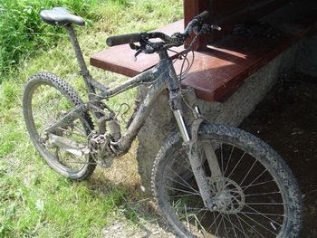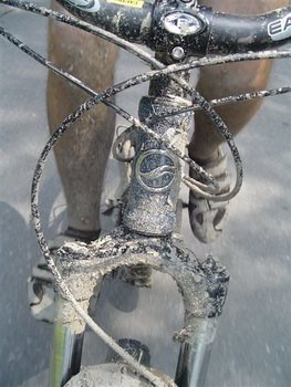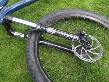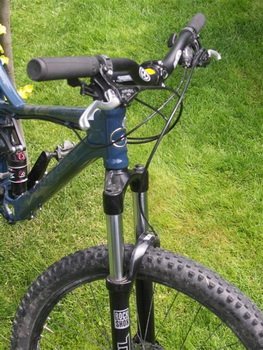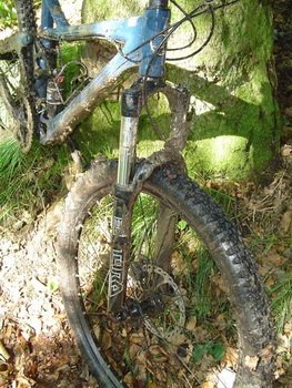 Koła (piasty Formula, obręcze WTB Speed Disc Trial i nierdzewne szprychy) wyglądają na mocne i nie miałem z nimi jakichkolwiek problemów. W trudnym terenie świetnie sprawują się opony Hutchinson Bull Dog 26x2.3. Wgryzają się w błoto, dzięki czemu rower idzie jak przecinak przez każdy teren. Problemy sprawiają jednak na asfalcie. Są ciężkie i mają duże opory toczenia, inna sprawa, że nikt normalny nie kupuję Reigna do jazdy po szosie. Amortyzator Regin 3 został wyposażony w powietrzny widelec Tora 302 Solo Air o skoku 130 pochodzący ze stajni Rock Shox’a. Jest on najtańszy z całej rodziny (Recon, Revelation, Tora), dlatego nie zastosowano w nim właściwe żadnych kosmicznych technologii. Stalowe, chromowane golenie górne, jak również stalowa sterówka nie wpływają raczej na obniżenie wagi. Zarówno komorę pozytywna jak i negatywną pompuję się przez jeden zawór. Jeżeli chodzi natomiast o regulacje zewnętrzne, mamy do dyspozycji jedynie pokrętło tłumienia powrotu. Niewiele? Na papierze, w porównaniu do innych amortyzatorów Tora wydaje się być ich ubogim krewnym, jednak sytuacja wygląda podczas jazdy. Amortyzator pozytywnie zaskakuje. Pracuję bardzo przyzwoicie zarówno na małych, średnich jak i dużych nierównościach. Początkowo, po napompowaniu na zalecaną wartość ciśnienia (dla mojej wagi było to 120 psi), Tora miała jednak nieprzyjemny zwyczaj nurkowania podczas mocnego hamowania. Na szczęście dopompowanie kolejnych 10-15 psi rozwiązało ten problem bez utraty wrażliwości na małe nierówności.
