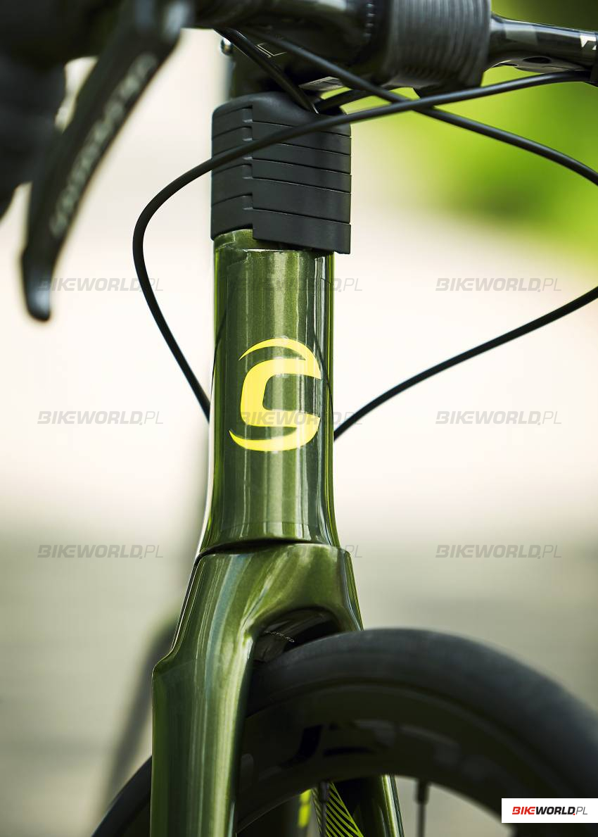 Zastosowane w SystemSix wewnętrzne prowadzenie przewodów, które ukryte są m.in. w rurze sterowej, zdeterminowało Cannondale’a do stworzenia blokady w sterach, która ogranicza ruch kierownicą – ma to zapobiec uszkodzeniu przewodów w przypadku, kiedy kierownica miałaby zbyt mocno się przekrzywić (np. podczas kraksy). Już teraz możemy napisać, że podczas testów nie miała miejsca sytuacja, w której podczas jazdy potrzebowalibyśmy większego zasięgu ruchu kierownicy (chociaż byliśmy na początku do tego pomysłu nieco uprzedzeni – jak widać w tym wypadku to co spotykane jest ostatnio coraz częściej w MTB, może mieć zastosowanie i w rowerach szosowych). Na SystemSix spokojnie możemy zrobić nawrotkę na jednym pasie szosy i nie osiągniemy limitu skrętu kierownicy.