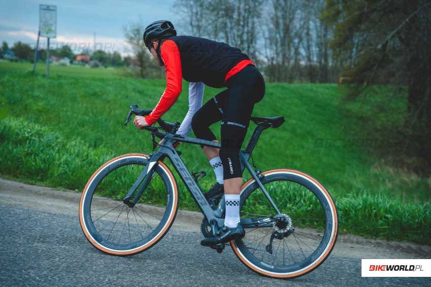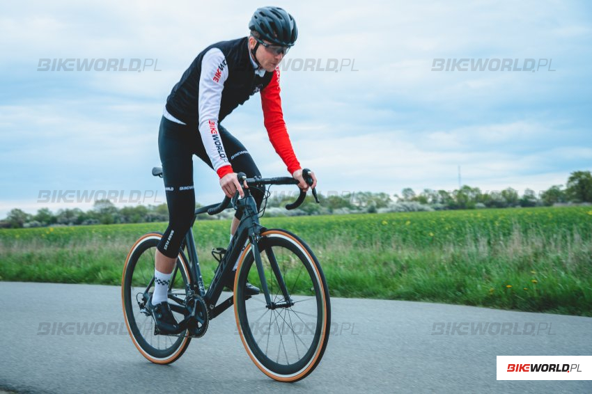Już pierwsze kilometry potwierdzają, że rower jeździ jak wygląda. Sensa jest piekielnie sztywna bocznie - nawet najmocniejsze sprinty na stojąco nie powodują najmniejszego ocierania klocków hamulcowych o obręcze. Czuć, że rower nie "trwoni" generowanej przez nas mocy i naprawdę żwawo przyspiesza, szczególnie zważywszy na raczej podstawowe koła i opony, na które zwróciliśmy już wcześniej uwagę. Wysoka sztywność w połączeniu ze sprawdzoną geometrią znajdują też odzwierciedlenie w prowadzeniu roweru, który ochoczo i precyzyjnie reaguje na ruchy kierownicą, ale jednocześnie nie jest nerwowy. W skrócie dokładnie tak, jak oczekujemy od roweru o sportowym zacięciu. Szczególnie na opcjonalnych stożkach Giulia bardzo dobrze utrzymuje wysokie prędkości "przelotowe".